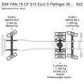 Achteras 1: Bandenmaat: 315/60 22.5; Dubbellucht; Max. aslast: 11500 kg; Bandenprofiel linksbinnen: 60%; Bandenprofiel linksbuiten: 60%; Bandenprofiel rechtsbinnen: 60%; Bandenprofiel rechtsbuiten: 60%; Reductie: enkelvoudige reductie; Vering: luchtvering
