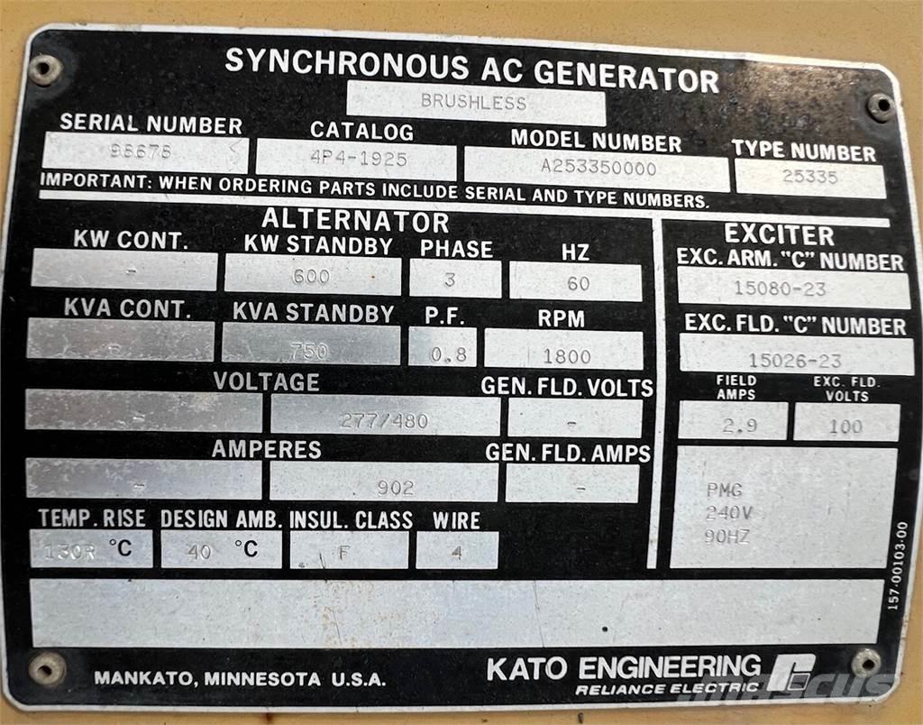600kW Kato generator end, 277/480V, 3 phase, 60Hz, 1800rpm, 0 housing, Catalog number: 4P4-1925, Model: A253350000, Type: 25335