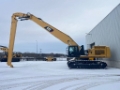 Overslag uitvoering 23,00m, giek 15,00m, steel 10,60m, airco, hydraulisch verhoogbare cabine, knijper/rotatie leidingen, slangbreukventielen op boom en stick cilinders, joystick thumb wheel, achteruitkijk camera, elektrische brandstofvulpomp, werkbreedte over rupsplaten 5,40m, contragewicht 19 ton. Land van fabricage: België / CE-goedgekeurd.