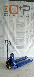 Stahlkonstruktion, EU made, pulverlackbeschichtet, incl. Akku und Ladegerät, Lenkräder Gummi, Lastrollen Tandem PU, Wiegeeinrichtung für nicht eichpflichtige Anwendungen, CE-konform, Teilungsschritt 500g