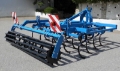 Leichtgrubber mit 3 Metern Arbeitsbreite, 19 Goliathzinken, Breitschar (200 mm), Zinkensystem Belotta, 15,6 cm Strichabstand, Rohrstabwalze (Dachringwalze, Doppelwalze optional verfügbar) und Beleuchtung mit Warntafeln.