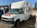 GM 6 Cylinder 6.6 L Gasoline Engine, 2022 US EPA Label, 841.7 Engine hrs, Automatic Transmission, 4300 lb Front Axle, 3901 lb Rears, 12300 lb GVWR, Aluminum Wheels, 225/75R16, Spring over Walking Beam Suspension, 180 in Wheelbase, 15 ft x 96 in Wide x 87 in High Body, Curbside Door