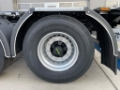 -Voorstuk op 385/55, het achterstuk op 385/65 banden. Hierdoor komt er meer ruimte tussen gelifte banden op het voorstuk en de weg.