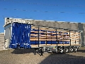 Står med sidehængte bagdøre samt skydegardin i siderne, og skydetag.