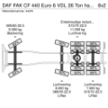 Achteras 2: Bandenmaat: 315/70 22.5; Dubbellucht; Max. aslast: 11500 kg; Bandenprofiel linksbinnen: 60%; Bandenprofiel linksbuiten: 60%; Bandenprofiel rechtsbinnen: 60%; Bandenprofiel rechtsbuiten: 60%; Reductie: enkelvoudige reductie; Vering: luchtvering